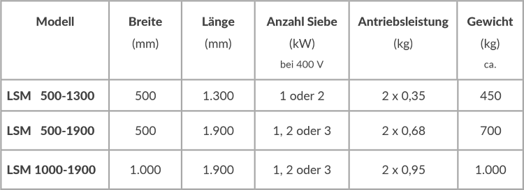 PDF-Download LinearsiebmaschineDie LSM wird eingesetzt, um Feststoffgemische nach ihrer Korngröße abzusieben.